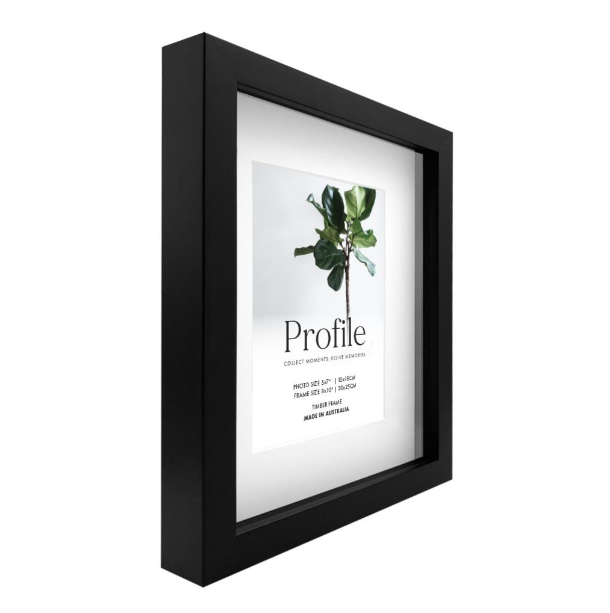An Elegant deeper wooden shadow-box photo frame 20mm(W) x 37mm(D) featuring a smooth matte black finish, Made in Australia using the finest quality of eco-sustainable materials.