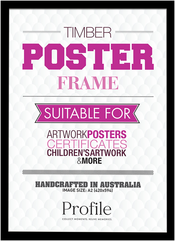 This black frame is supplied with genuine glass, solid MDF backing with a bevel-cut, acid-free matboard in a soft white tone to suit an A2 sized print, poster or artwork with harmony and balance.