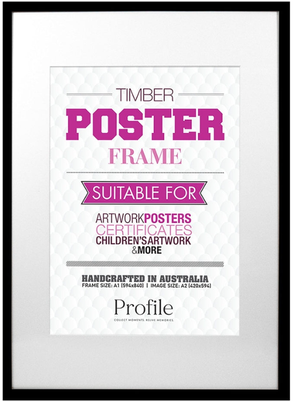 This decorator box style black A1 frame is a 20mm(W) x 30mm(D) solid timber picture frame featuring a smooth matte black finish.