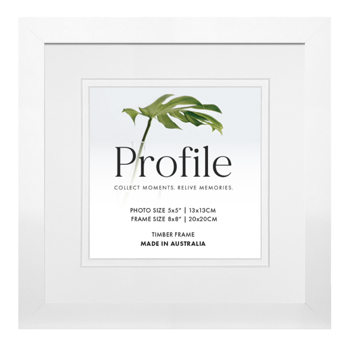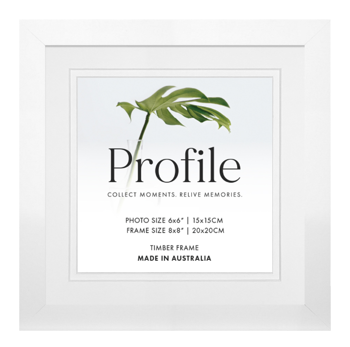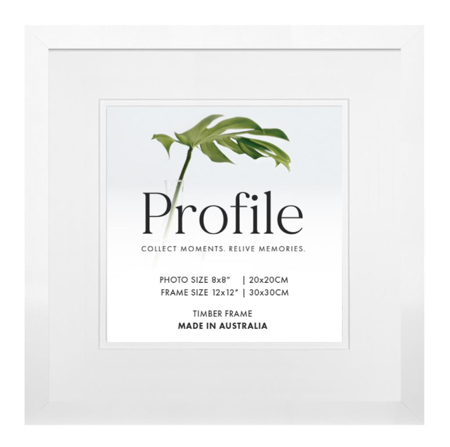An Elegant, contemporary 20mm(W) x 20mm(D) solid wooden picture frame featuring a smooth matte white finish, Made in Australia using the finest quality of eco-sustainable materials.
