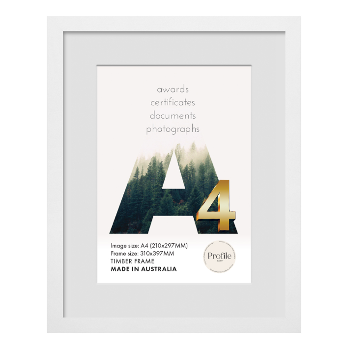 These certificate frames are supplied with genuine glass, solid MDF backing with an acid-free matboard to suit an A4 artwork ina neutral white tone to enhance your photo, picture or artwork with harmony and balance. All picture frames also come with our famous Lifetime Guarantee.