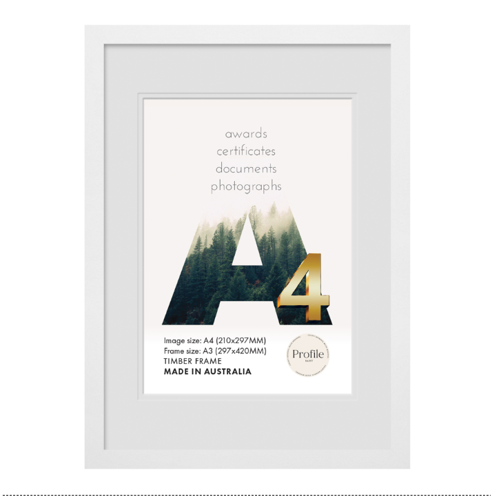 An Elegant, contemporary 20mm(W) x 20mm(D) solid wooden picture frame featuring a smooth matte white finish, Made in Australia using the finest quality of eco-sustainable materials.