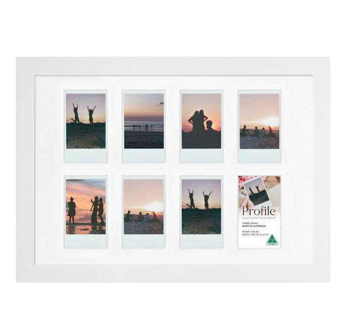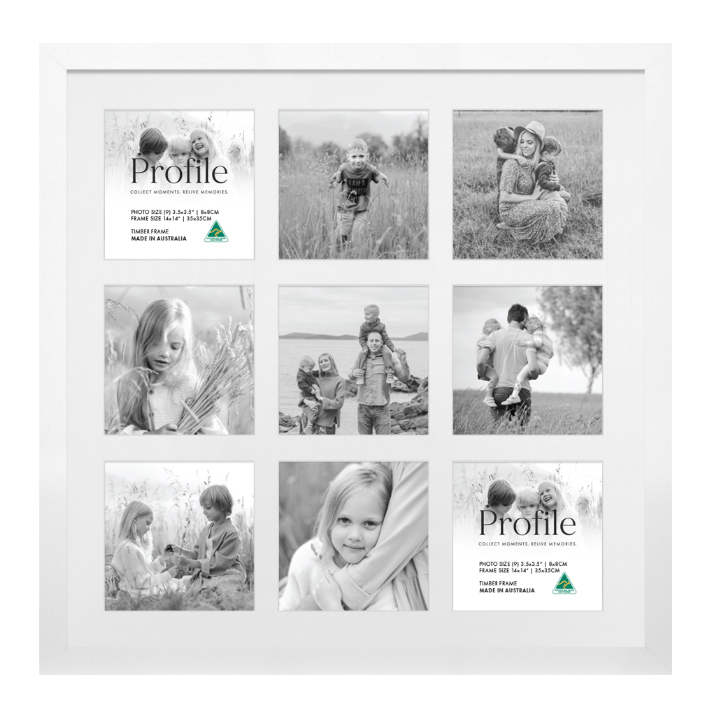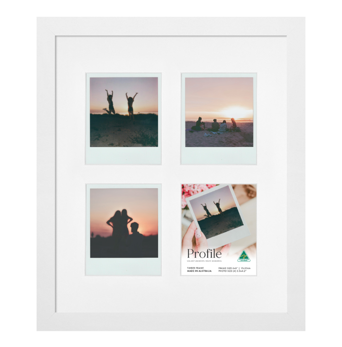 Showcase your favourite collection of Instagram photos with this unique square multi-window Insta-Square collage photo frame. It comes in an elegant 20mm(W) x 20mm(D) solid wooden picture frame, featuring a smooth matte white finish. This fun ‘Insta-frame’ is proudly Made in Australia using the finest quality of eco-sustainable materials.