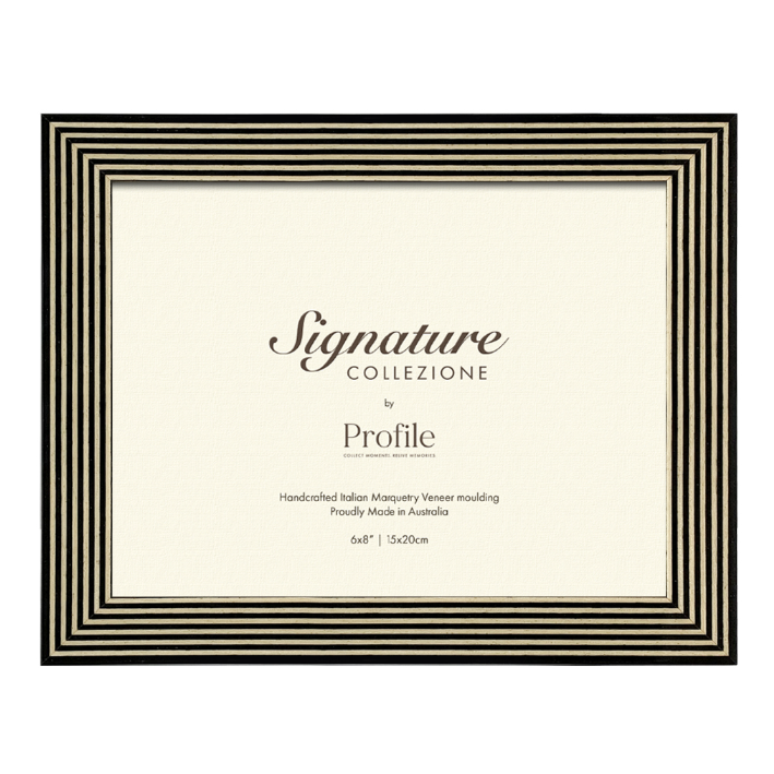 This extraordinary Italian wood is then masterfully cut, joined and transformed by our skilled picture framers from Profile Australia, to create an heirloom quality picture frame. Every Signature frame is finished ina durable high-gloss varnish that brings out the lustrous sheen of each woods unique grain.