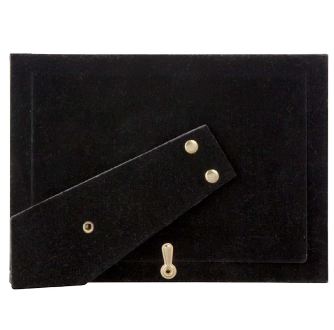 Each solid timber Signature frame features a genuine glass face front and a plush, black velvet flock backing, brass fittings with an easel style stand and double-sided satinribbon.