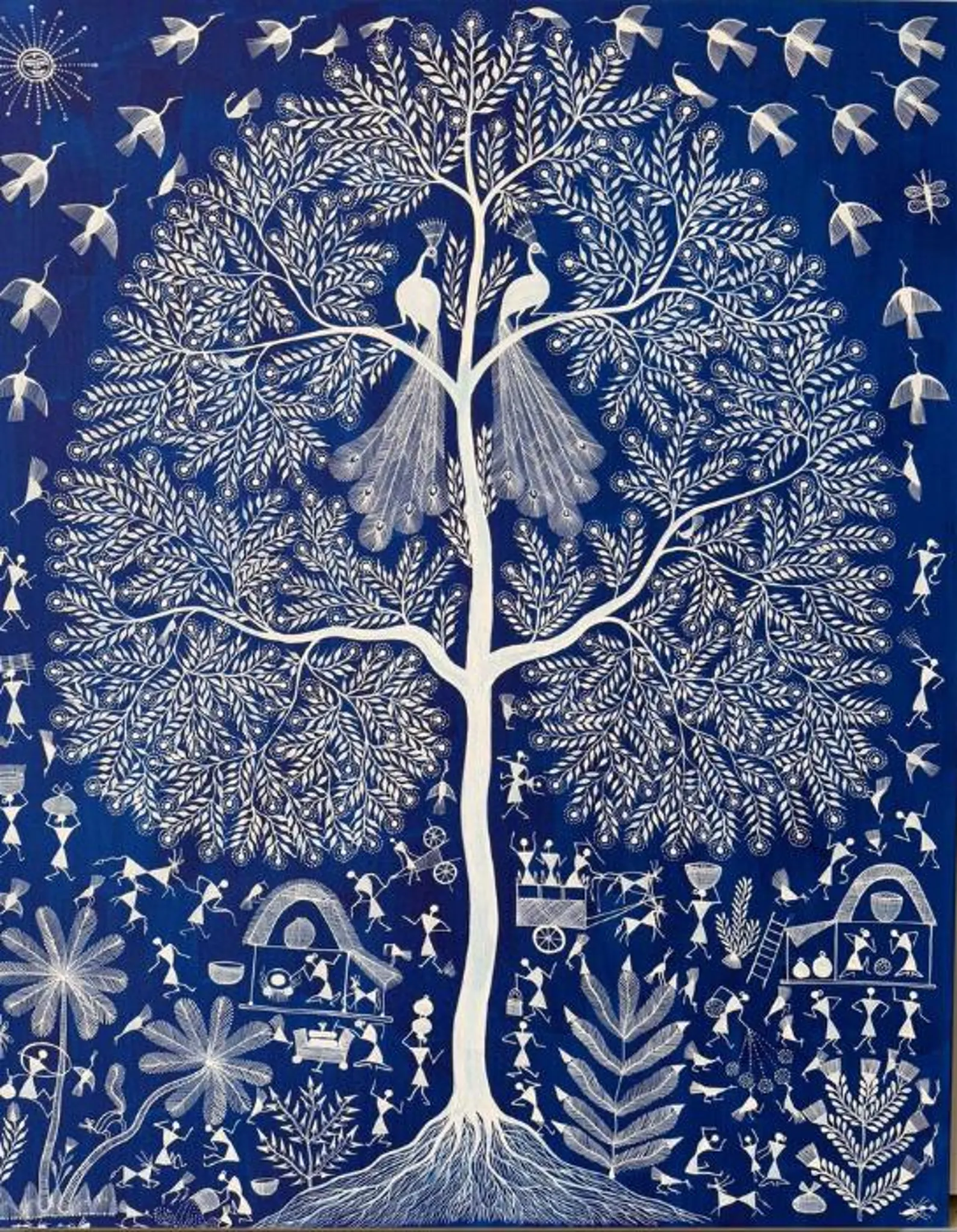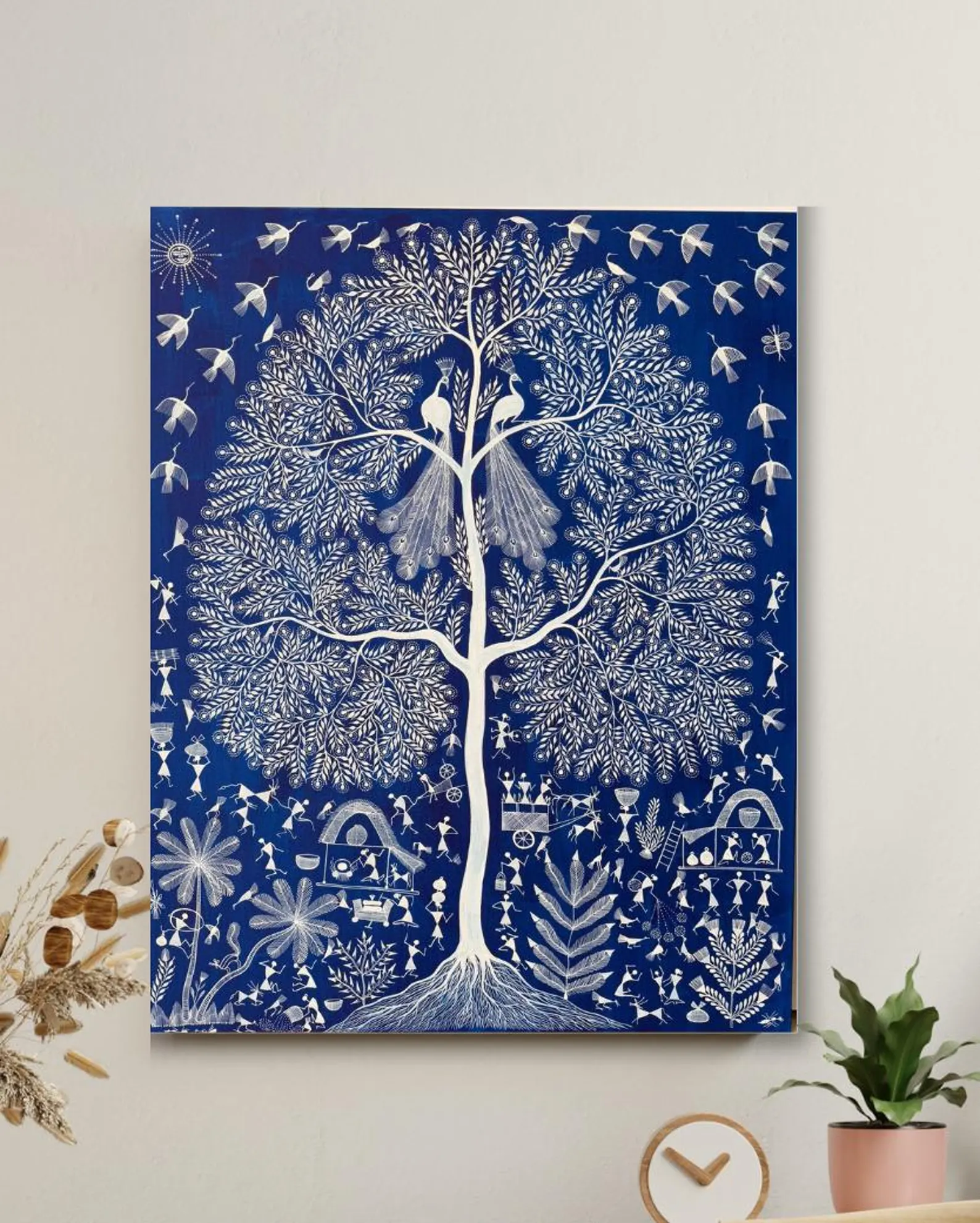 Original hand-painted Warli Tribal Art inspired by traditional Indian village life and nature storytelling.