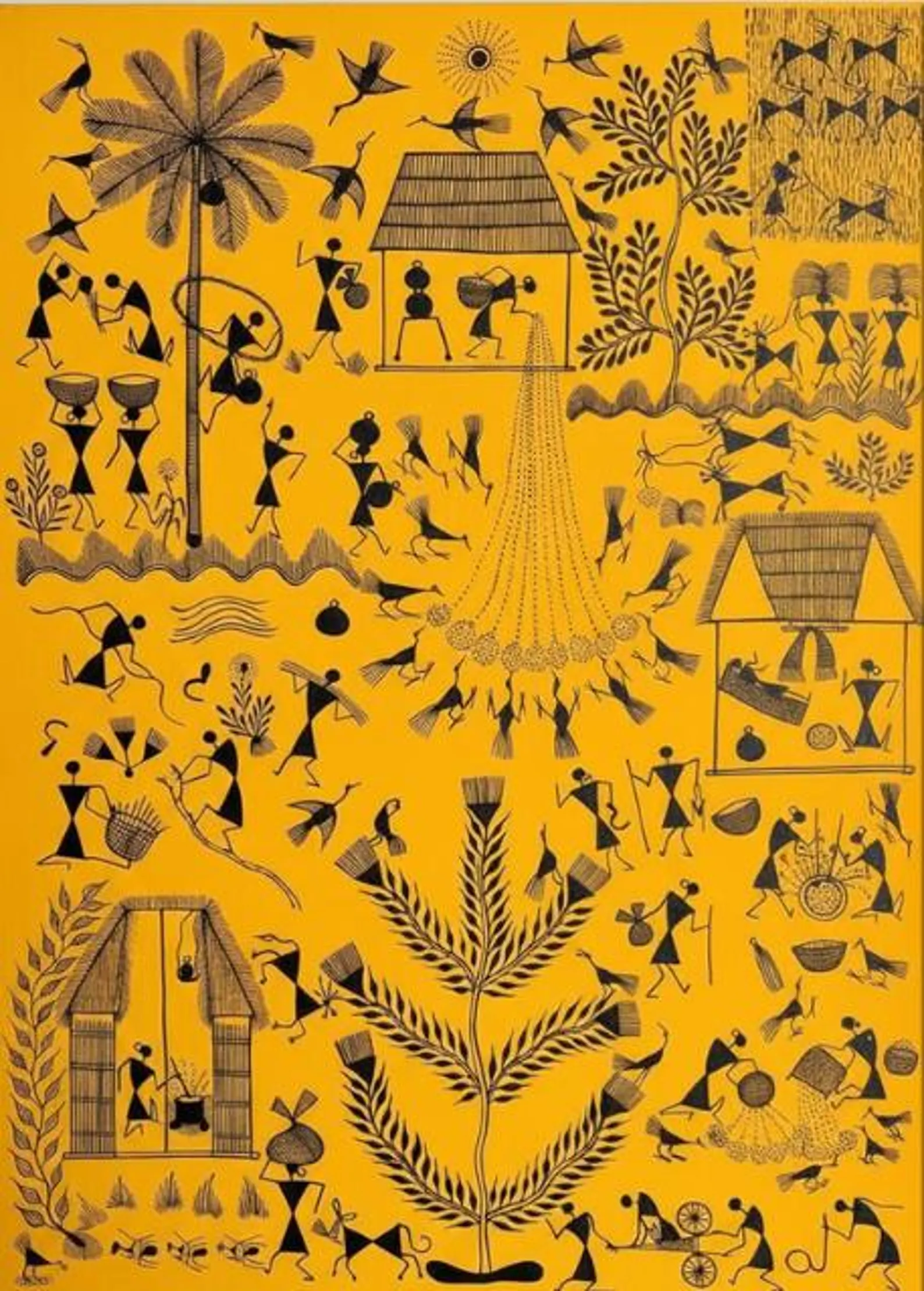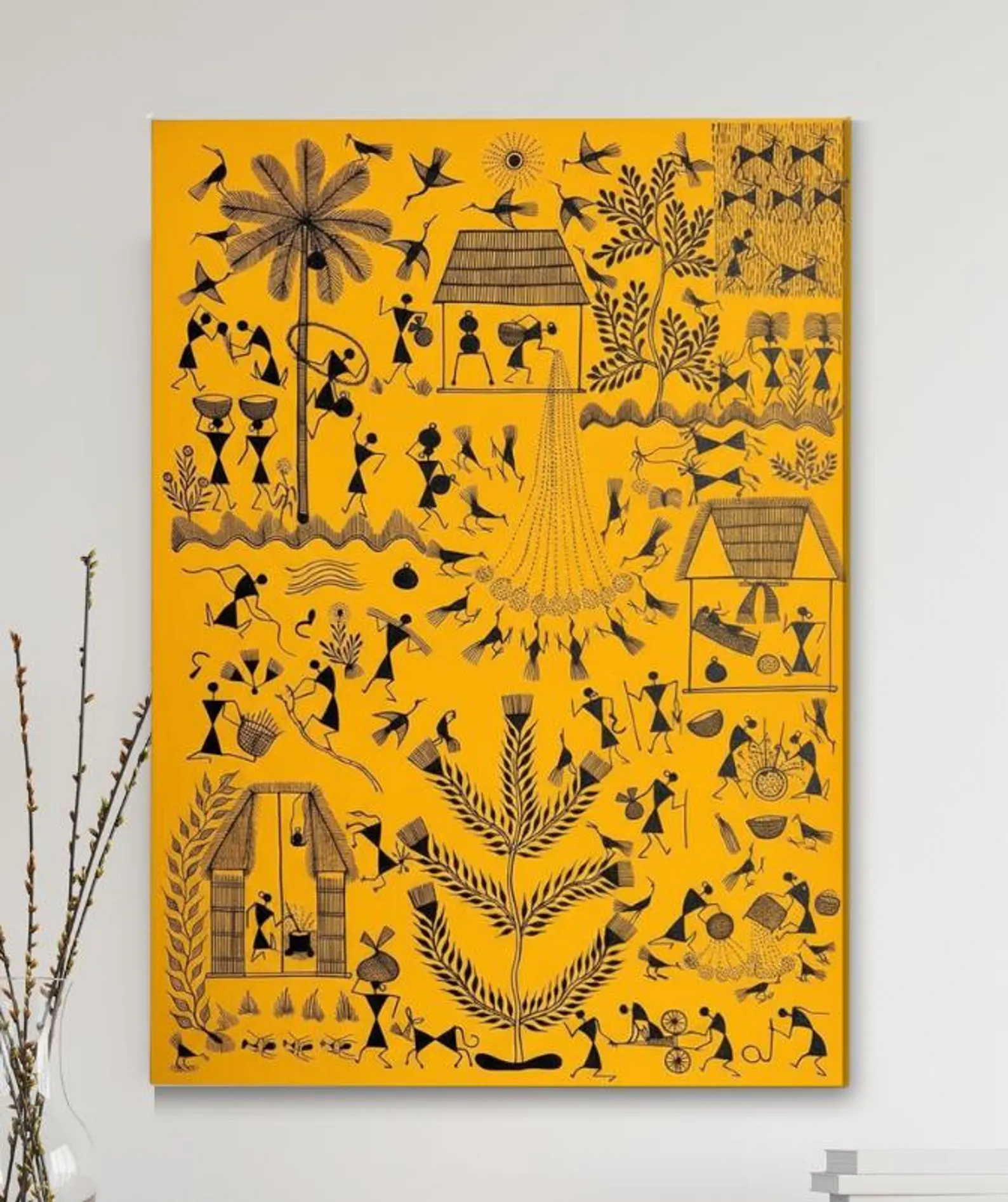 Original hand-painted Warli Tribal Art inspired by traditional Indian village life and nature storytelling.